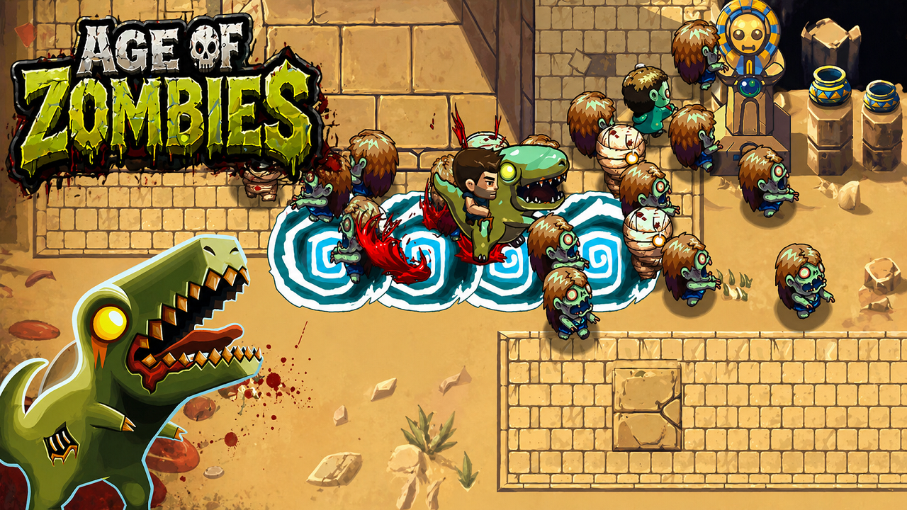 Age of Zombies is an arcade-style action shooter game combining classic twin-stick shooter mechanics. You play as Barry Steakfries, a warrior specializing in confronting the most bizarre threats in history. Your mission is to travel through different eras, eliminate hordes of zombies, and prevent the catastrophe from spreading.