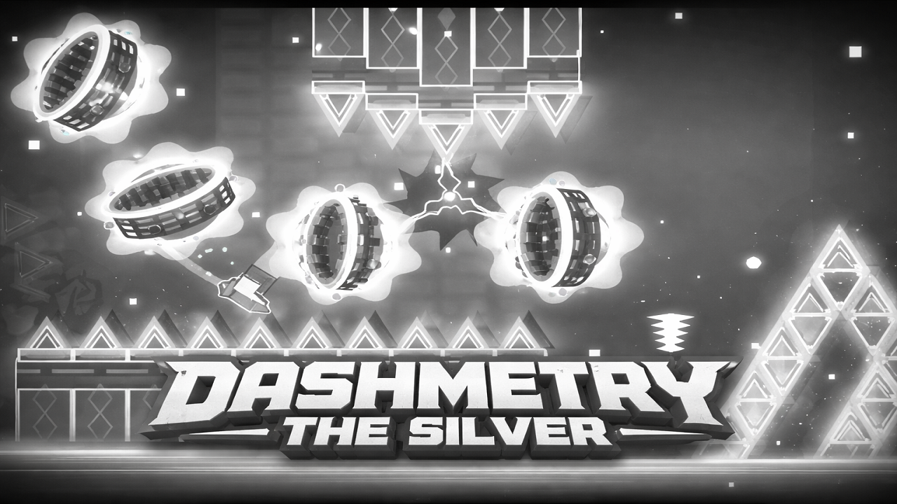 Dashmetry The Silver is an Easy Demon level designed by zeta11, featuring fast-paced gameplay, constant transformations, and a constantly changing tempo. From the start, you'll be drawn into a high-pressure journey with narrow corridors, dense obstacles, and incredibly fast transitions. Test your skills and see how well you can control this chaos!