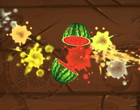 In Fruit Ninja, players slash fruits with a blade controlled through the touch screen. When the fruit is tossed, the player slides his finger across the screen to create a slash line to split them. Players will get bonus points if they split many fruits in one slash and can use other fingers to perform multiple slashes at the same time.
