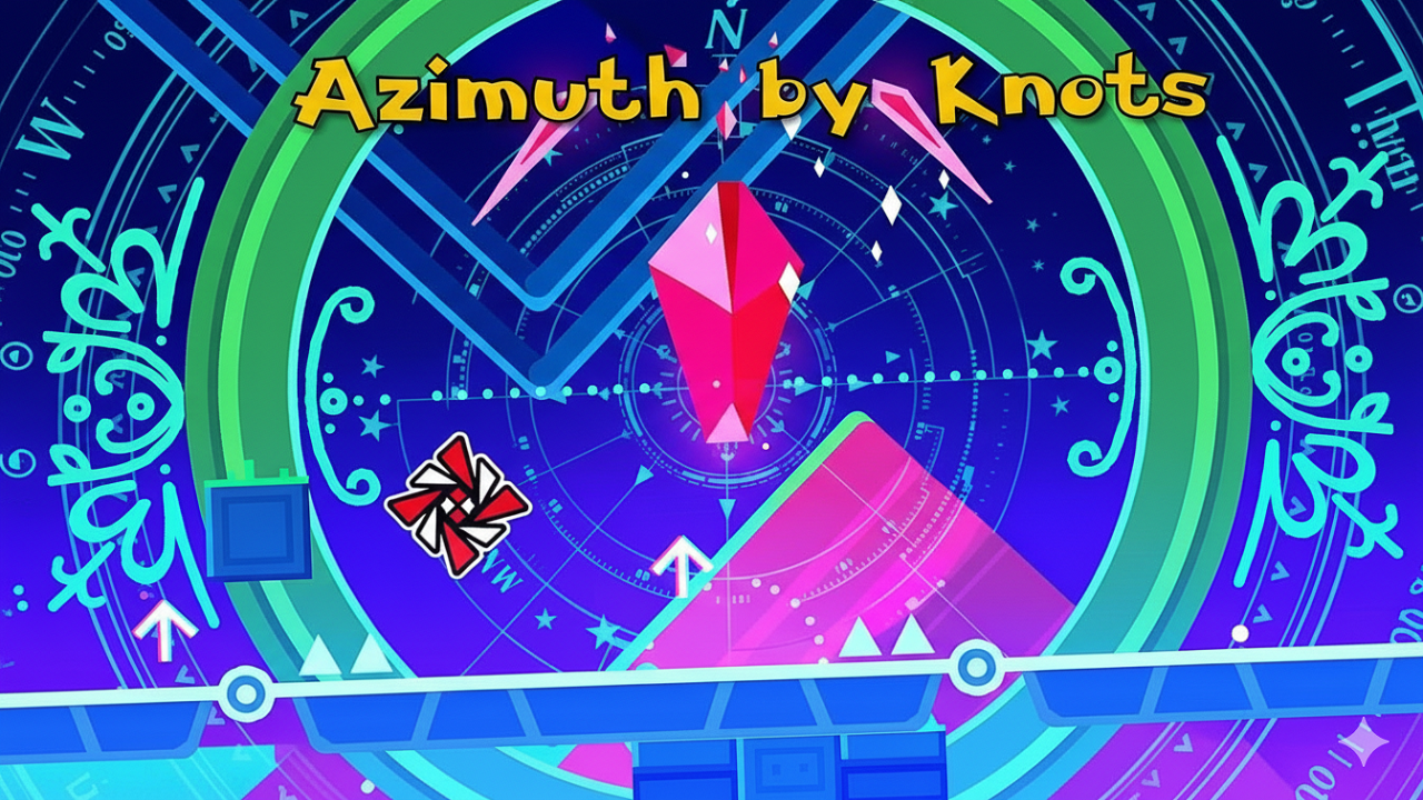 Surf on the electronic wave with the Geometry Dash Azimuth game screen, where speed racing takes place in the geometric world. This is a level version designed by Knots, released in 2021.