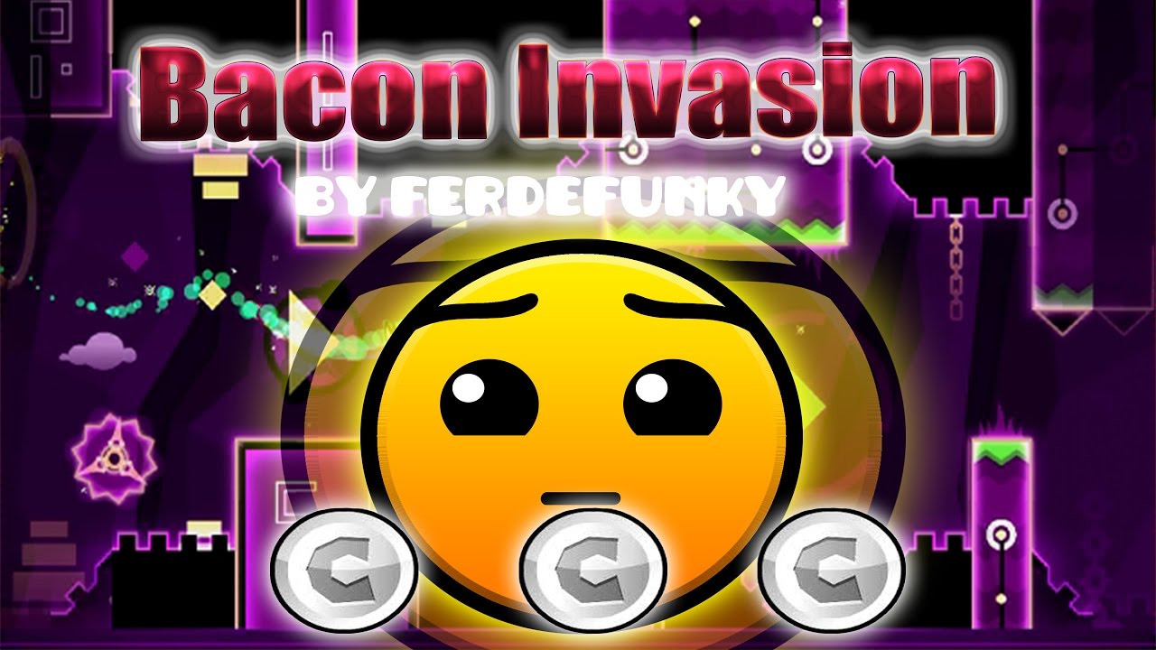 Get ready to fry up some sizzling platforming action with Geometry Dash Bacon Invasion, a devilishly tricky Hard level rated 5 stars and 3 user coins, forged in the fires of the iconic rhythm game. This level comes courtesy of the player Ferdefunky, who is most known for his Easy Demons STARPUNK and INFINITY, as well as his two Gauntlet levels, Traction and Shuriken. Known for wrapping precise, engaging gameplay in eye-popping visuals, Ferdefunky has cooked up his magnum opus in Bacon Invasion.