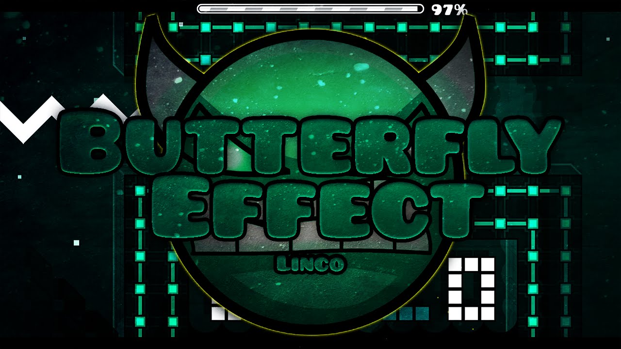 Geometry Dash Butterfly Effect is an Easy Demon level rated 10 stars produced, confirmed, and released by Linco. It is a simple recreation of Nine Circles. It has a teal color scheme. It is one of the simpler Nine Circles levels, with multiple mini-wave parts that use fakes in a variety of locations. It features a few gravity shifts. It challenges the player's fundamental ability to manage their wave and react as quickly as possible to impending obstacles.