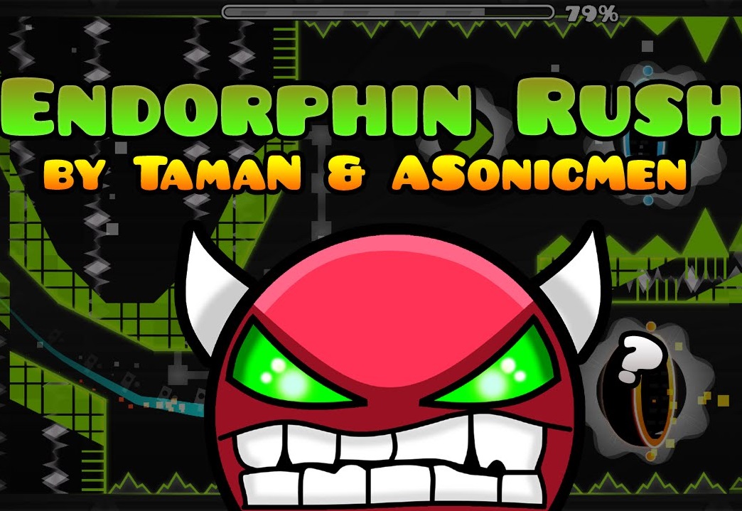 Geometry Dash Endorphin Rush is a straightforward Demon collaboration level between gamers TamaN and SonicMen. It's an Easy Demon level rated 10 stars and 3 user coins. The level was created using Version 2.0 and a simple design. Despite having several timings and frequent splits, it is still regarded as a Easy Demon.