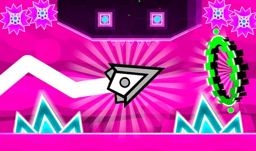 Geometry Dash: Hell Wave offers an intense challenge with the core gameplay of overcoming a series of complex obstacles to reach the finish line. You will maneuver the wave icon to move in a zigzag pattern through challenging narrow gaps, taking advantage of the smallest gaps to squeeze through. A special point is that your character is not allowed to touch any terrain or objects along the way.
