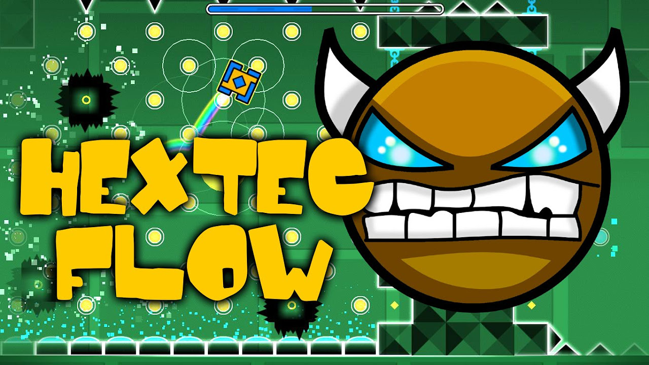Geometry Dash Hextec Flow is an Easy Demon level rated 10 stars, created by the player TheRealDarnoc. Also, this level is in the Demon Pack 2 level set. This level is like a more complicated version of the Jumper level because it has many traps and false paths, but it also has more forms than the original.