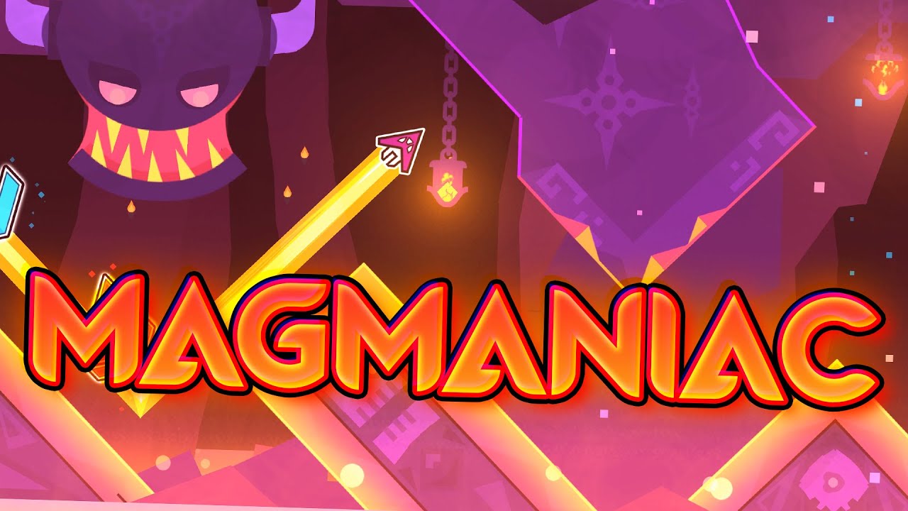 Get ready to take a scorching hot bath in the magma springs of Geometry Dash Magmaniac! Designed by an all-star team of 10 demonic creators, including Whirl, Pyxidus, Earthum, bli, seafarer, tricipital, ZachLy, fjud, Hychie/Daivrt/SonOfCthulu, and Matty2003, this epic Easy Demon rated 10 stars will immerse you in bubbling volcanoes and searing lava flows unlike anything you've experienced before. From the moment you enter the ancient, mystical temples, you know you're in for a wild ride. Ominous warning signs in eye-searing pink hues signal the epic challenges that lie ahead. Deadly obstacles and portals that shift your form lurk around every turn, promising lethal surprises across Magmaniac's tricky landscapes.
