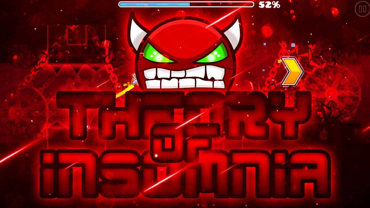 Geometry Dash Theory of Insomnia is a Hard Demon level created by TheRealDorami/Dorami and rated 10 stars. This level is known for its intricate parts and numerous fake spheres, which make it extremely difficult to pass even for experienced players.