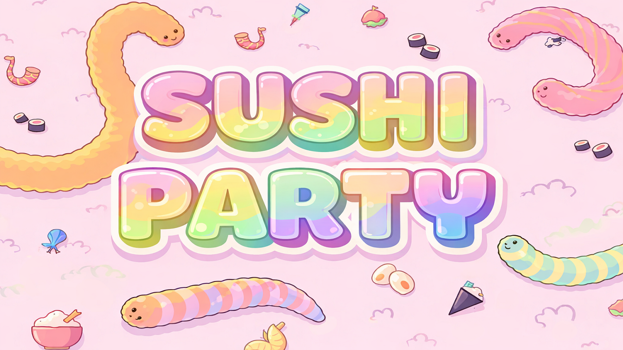 Sushi Party is a charming, kawaii-style snake game where you control an adorable snake that hunts for delicious sushi. The game requires intense concentration in every moment. Just one small mistake, and you can instantly become prey to other snakes on the map.