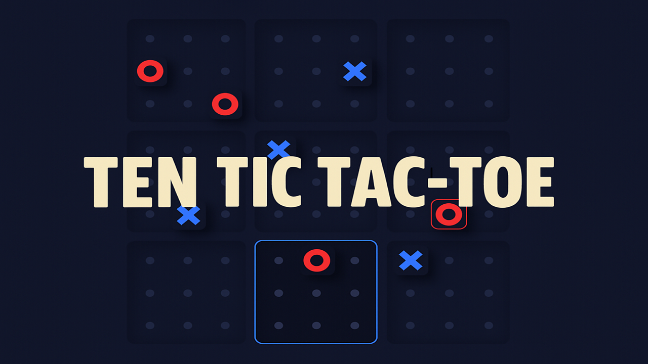 Energy flows differently in Ten Tic-Tac-Toe, the casual strategy game that reshapes the timeless three-in-a-row battle. Nine mini tic-tac-toe boards combine into a grander grid, creating a duel that demands both sharp tactics and foresight. Every move impacts not just the current board but the larger puzzle ahead. Step into this clever challenge and put both your mind and instincts to the test!